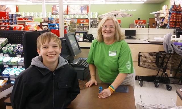 Young Cale Butts made a bit of Vinton retail history this morning when shortly after 9 a.m. he became the first person to ever make a purchase at the new Shopko Hometown Vinton store. Clerk Lori Polesky rang up a candy sale, making Cale the first official Shopko customer.