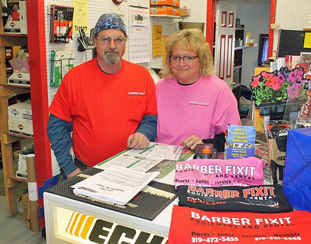 Despite cold, windy weather that discouraged customers from test-driving the zero-turn mowers, Leon and Cindy Barber held a successful open house at Barber Fix-It, the lawn mower/outdoor equipment sales and rental business on Saturday morning.