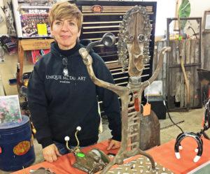 The shop of her rural Vinton home is now also the home of Unique Metal Artwork.
