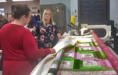 The shop held an open house on Sunday, where residents could stop in and visit and watch as the longarm machine quilted.