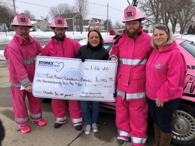 Lu Karr of Vinton nominated Pink Heals-Eastern Iowa. Karr, representing the local Storey Kenworthy office presented a check for $1,092.00 to Pink Heals last week. Dennis Bramow, founder of Pink Heals said the money will help Pink Heals continue their mission of spreading love and support to people in Eastern Iowa.