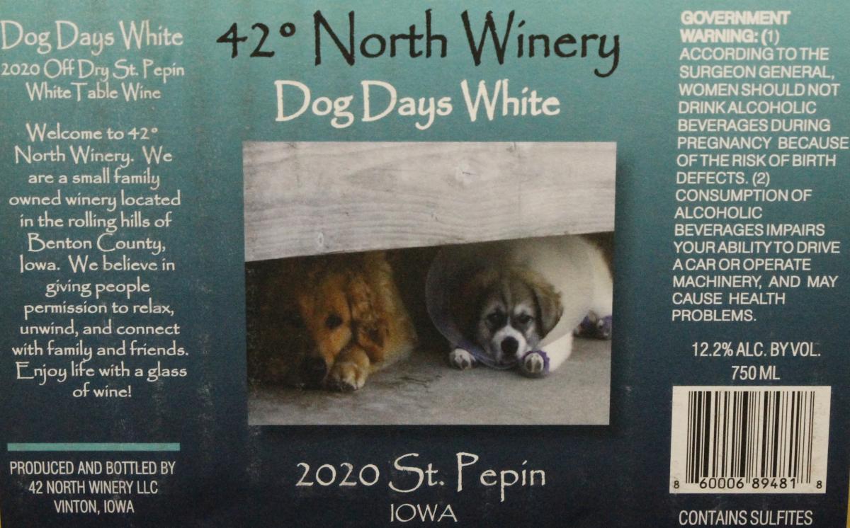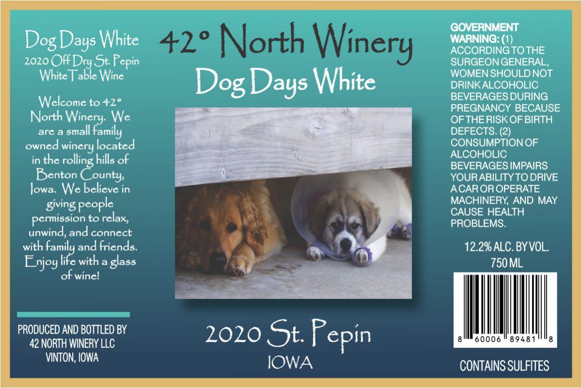 Dog Days White a Semi-sweet white with flavors of grapefruit, citrus, pear and honeysuckle