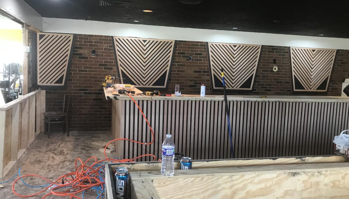 A large bar area is being installed along the south wall for diners to sit at with a drink and/or meal. New seating is also being installed. With a crew in tow, the inside is taking shape and will look completely different. It will be quite an improvement to the building.