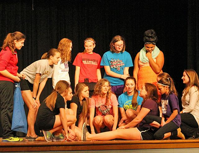 Even though this play has a very serious topic, there are moments of singing, dancing and comedy. The kids have fun playing some dodge ball, singing about their art teacher's (played by Kenyatta Yarbrough-8th) strange obsession with her cat and encouraging each other to eat cafeteria food made by the lunch ladies (Brenna Scheel-8th, Madi Atkinson-6th and Autumn Sauer-7th). Our middle schoolers hope to entertain as well as teach the audience (and themselves) a very important lesson.