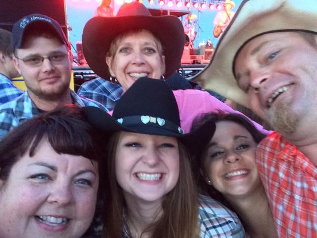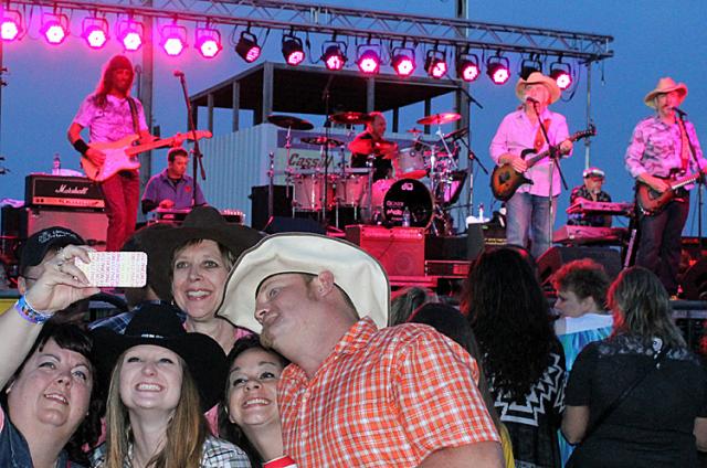 During the concert, Kavalier and some friends squeezed in close for a selfie, with the band in the backgroun. The photo we took of that selfie is accompanied by the actual photo they took.