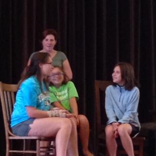 Pic 3 - Mary shares stories on her home visit - l to r - Molly Cummings, Sophia Vasquez, April Seitz, Katherine Seitz
