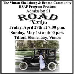 The actors of the Vinton-Shellsburg Home School Assistance Program will perform their play, "Road Trip," Friday at 7 and Sunday at 3 p.m. in the Tilford Auditorium.