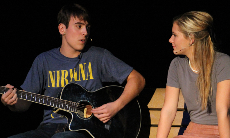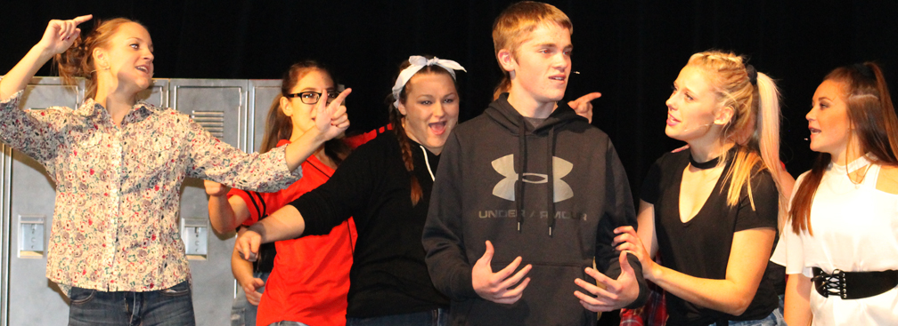 Bring It On, inspired by the 2000 movie starring Kirsten Dunst, tells the story of Campbell, played by Gracie Horst, who gets redistricted from preppy Truman High School to rougher, edgier Jackson High School, where (gasp) THERE IS NO CHEER SQUAD!Campbell and the nerdy Bridget (Sarah Schminke), also redistricted, convince the dance crew, Danielle (Rachel Tandy), Lacey (Baylee Bruce), and Nautica (Hannah Kalous) to form a cheer squad. The crew girls, in turn, convince Cameron (Casey Funk), Twig (Cole Neilson), and Randall (Gabe Schmidt ) to join them as they head to regionals to compete against Truman's finest, Skylar (Taylor Berry), Kylar (Olivia Coder), Steven (Andrew Wirth), and the evil Eva (Allissa Hendryx).