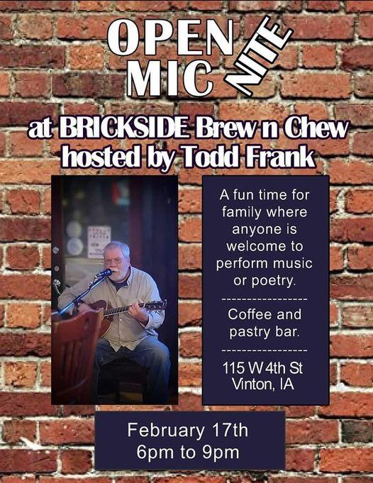 Brickside Brew N Chew will be the location of an Open Mic Nite hosted by Todd Frank. The event is a time for anyone who would like to share music or poetry with the public.