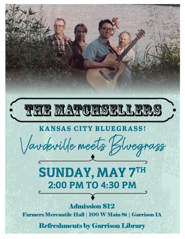 The Matchsellers will be performing at the Farmers Mercantile Hall in Garrison on Sunday afternoon, May 7th, from 2-4:30 p.m.