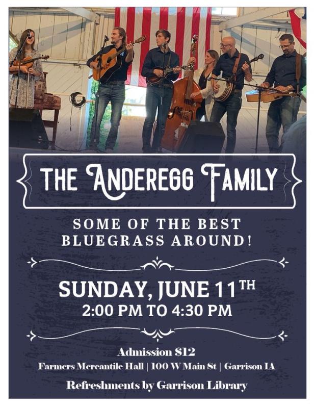 The Anderegg Family will be in Garrison for a Sunday afternoon of bluegrass, gospel and old time classic country music on June 11th.