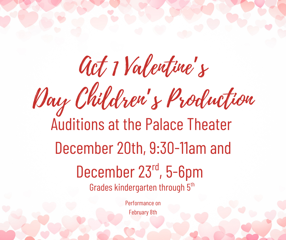 ACT 1 is going to be having auditions for an upcoming Valentine's Day Children's production.