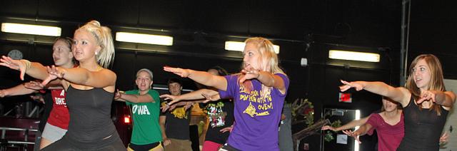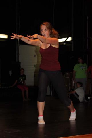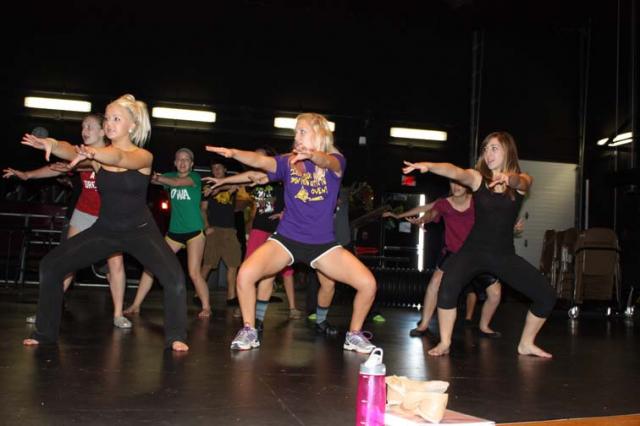 Pictured seniors Liz Moen (Demeter) and Emma Horst (Bombalurina) sing about Macavity, senior Alex Springer (Rum Tum Tugger) and junior Will Hancock (Munkustrap) welcome and revere senior Matt Walston (Old Deuteronomy), and several female cats sing and dance about the Magical Mr. Mistoffelees.