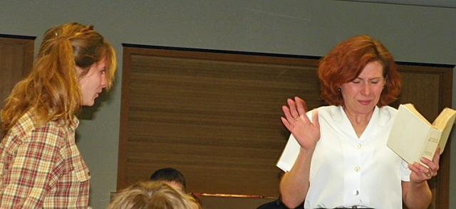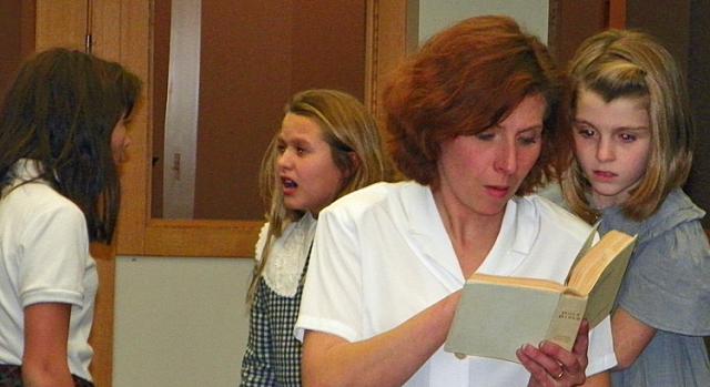 Mrs. Armstrong (Mary Jo Hainstock) broke her leg, and spent December in traction in the hospital, only able to communicate with church members via the telephone. Mrs. Bradley (April Seitz) was the only church member who would dare fill Mrs. Armstrong's shoes.