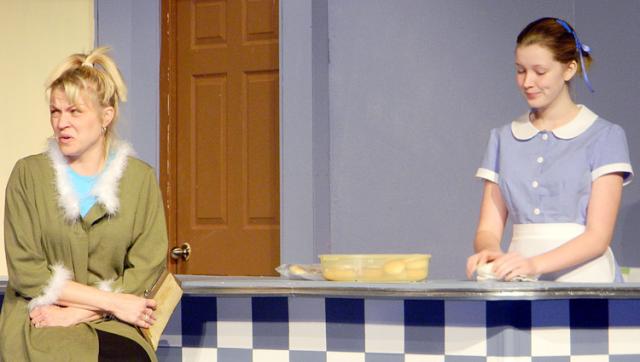 “Wow, she shows such poise in her performances for someone so young. From the very beginning, she's been nothing but professional. In some ways I've seen her develop a little bit like the character of Elma,” she said, referring to Mikala's role of a naive, innocent waitress. “There was a point lately where we were ad-libbing where she kind of snarked on me!” Cummings laughed. “It's kind of funny because in those first couple of rehearsals she was a little bit more like Elma than she is now. She's like the knowledgeable Elma the character becomes by the end.”