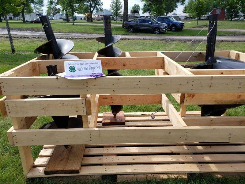 Andrew Pingenot, Blue Ribbon, Andrew’s auger bit pallet was built to simplify the storage and changing of auger bits for their skid loader. It has room for additional compartments for other sized bits which can be used in the meantime for additional tool storage.
