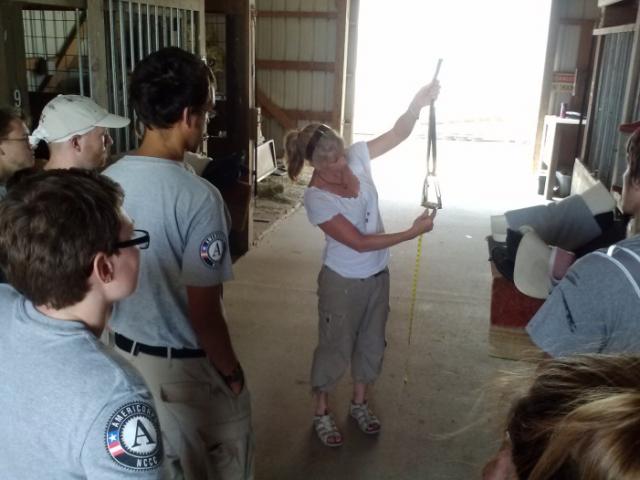 The first two days of the project consisted of training to be horse committee members, side walkers and barn assistants. The team learned how to set up “tack” and prepare the horses for classes. Setting up tack included getting the liners, saddle pads, saddles, leathers and stirrups ready for the horses that will be used in class. The team also groomed the horses and prepared their stalls before and after classes.