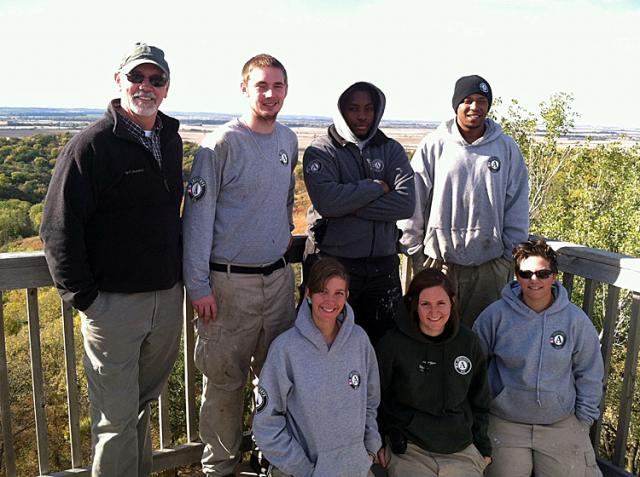 Maple 7 started their last project in Omaha, Nebraska on October 18 with Lauritzen Gardens and finished on November 2. The team members were thrilled to close out the year with an environmental project, and they worked hard pulling weeds and invasive plant species out on the three-tiered resistance wall just off of Interstate 80. The team worked on completing the quarter of a mile long resistance wall as much as possible; it has been on Lauritzen Gardens’ list of projects for a while and the organization was relieved to have the team’s much needed help.