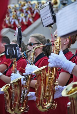 Our Directors Dr. Richards and Mr. Smyth do a great job with us. Plus we have about 10 student staff members (they wear fancy suits and ear pieces on gameday!) who totally look out for us. The whole thing is mostly student-run because there is a huge amount of pride in the group. It is just cool to see how much everyone cares about the band.