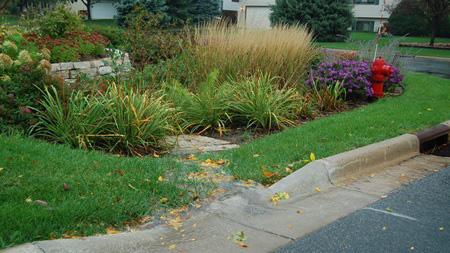 3. Bio retention cells or rain gardens utilize strategic landscaping to capture runoff, giving it the opportunity to infiltrate to into the soil rather than move directly to city storm systems. These are made with layers of rock and sand to encourage infiltration and storage. The city of Okoboji, Iowa currently has over 3300 feet of curb cut-outs that drain into systems like these. Okoboji has implemented a city ordinance that mandates any new development must plan for a bio retention system sized properly to accommodate any runoff and thus keeping the water where it lands.