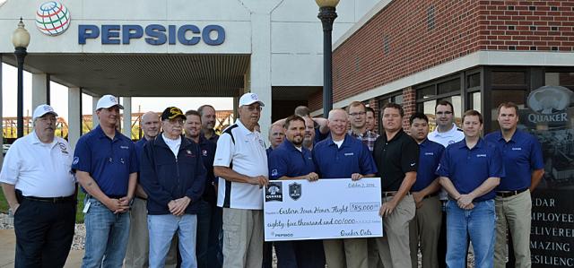 The Eastern Iowa Honor Flight today received a donation of $85,000.00 from the employees of the Quaker-PepsiCo Companies. A group of employees who are veterans and known as the Valor Group have spearheaded ongoing fundraising programs among employees of the company, and then those funds raised are matched by PepsiCo. Quaker sponsored one flight last year, and is sponsoring two flights this year, including the upcoming flight on Tuesday, October 21, 2014. We will then begin planning for 4 flights in 2015.