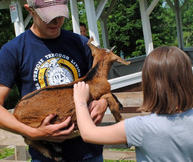 The petting zoo and pony rides lasted from 11 am to 3 pm on Saturday, June 27th, at Party in the Park. At the petting zoo, members brought in dogs, cats, bunnies, sheep, goats, and cows. It was a very good turn out, with members helping with the pony rides and community members lining up to ride the horses and pet the animals.