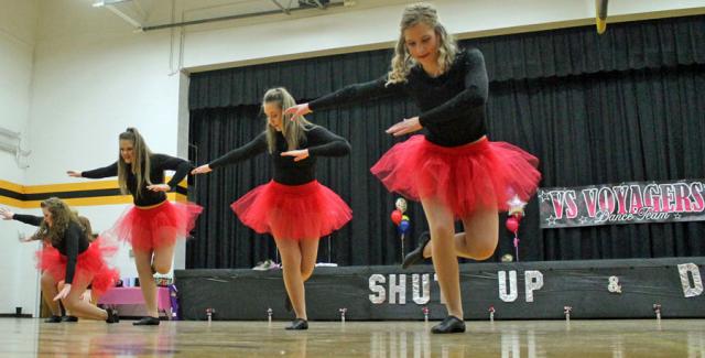 The Vinton-Shellsburg High School Voyagers brought dance lovers together on Saturday, inviting younger dancers, alumni Voyager members and even a few high school guys to join them in performing.