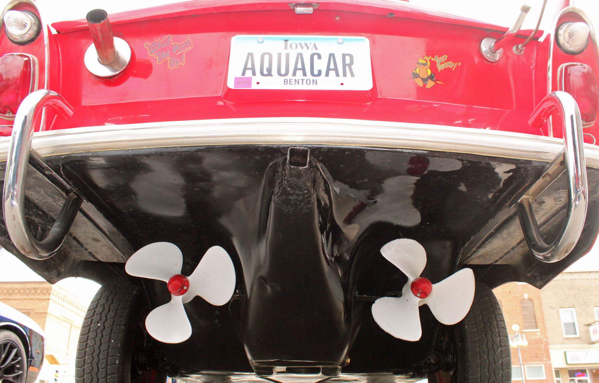 Primmer and his wife, Pam, have taken the car to some Iowa lakes. In addition to the license plate for road driving, the vehicle also has a window sticker for water use.