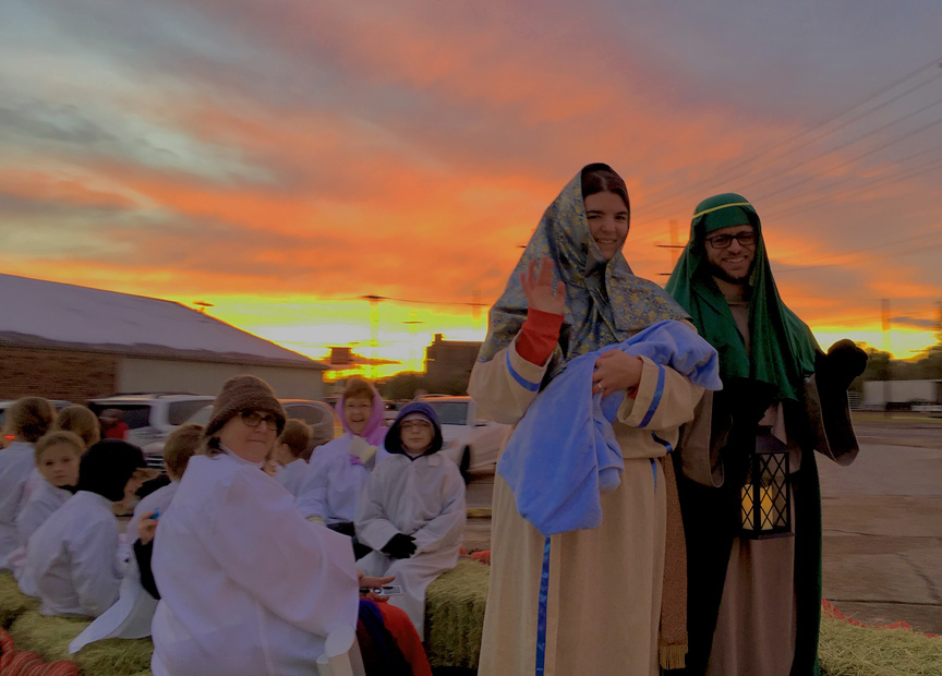 The Lions were in the parade. Several churches, too, with people representing Mary and Joseph, the angels and the rest of the Nativity Scene characters. Fire trucks and Santa were there as well, of course. Business people stood outside the doors of their stores, waving to the parade participants.