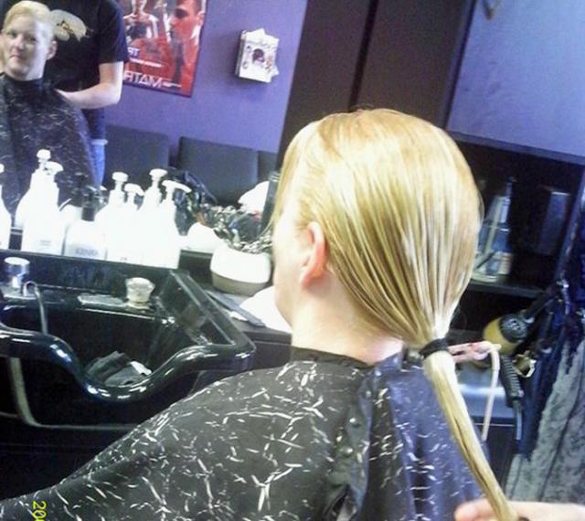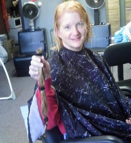 Bobbie, who works at Monkeytown in Vinton, had her long hair cut so she could donate it to the Locks of Love.