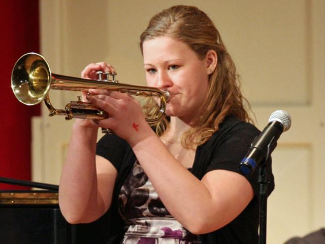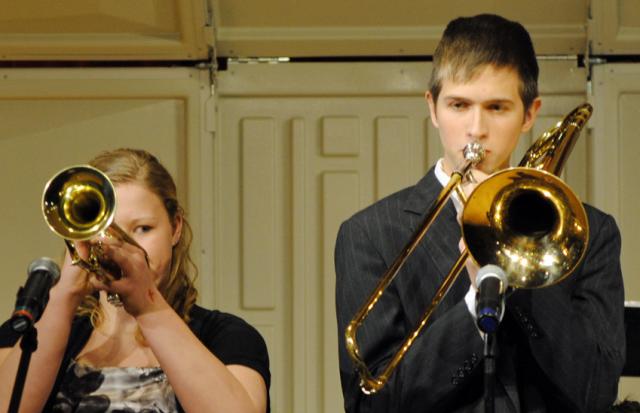To hear the Jazz Band's performance, click any of these links. Then sit back and enjoy these talented folks as they play "Caravan",   "A Sentimental Mood" and "Choose Your Blues"