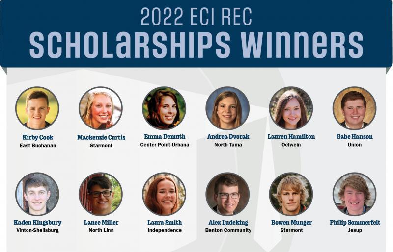 East-Central Iowa REC is proud to announce it has awarded $1,000 scholarships to one young man who plans to further his education in the Powerline Technician program and 11 graduating seniors who plan to further their education in a diverse range of programs. Congratulations to these deserving students!