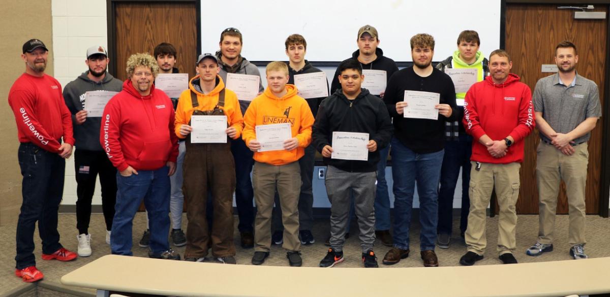 Students in the Powerline program at Northwest Iowa Community College, Sheldon, IA were recently awarded scholarships based on their desire to enter the lineman profession, academic achievement and leadership qualities.