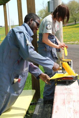 AmeriCorps National Civilian Community Corps (NCCC) team Cedar 5 has been up to their knees in paint in Flandreau, SD for their second project. Cedar 5 has been working with not one but four sponsors in Flandreau in an effort to clean up after recent Spring flooding hit the town and to help clean up the school grounds over the summer at Flandreau Indian School.