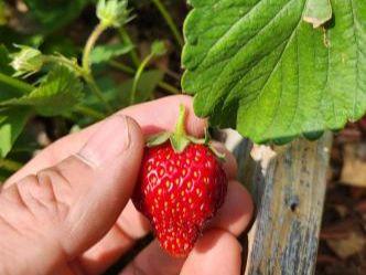 Harvest strawberries when the fruit are uniformly red (fully ripe). Strawberry cultivars can differ on what shade of red indicates they are fully ripe. A substantial white ring inside of the berry usually indicates when a berry is not fully ripe. Taste each cultivar to see what color indicates the optimal flavor for you.
