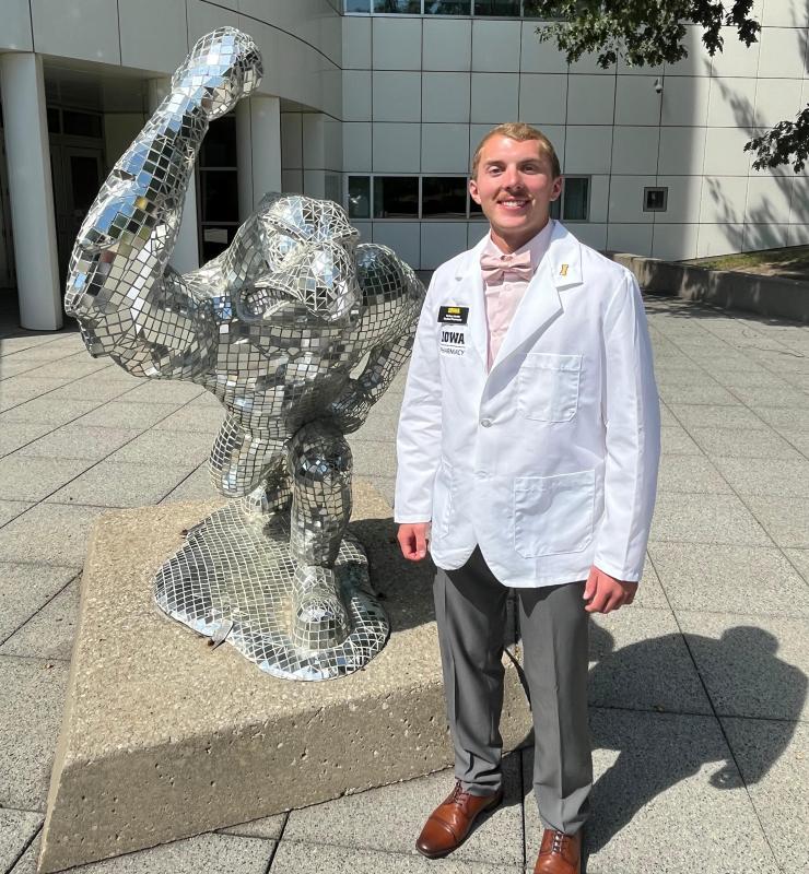 Vinton Shellsburg Class of 2022 graduate Graham Henkle was recently welcomed into the University of Iowa School of Pharmacy during a ceremony held in Hancher Auditorium. On August 24, 2024, 115 first year pharmacy students received their white coats and recited the oath of a pharmacist.