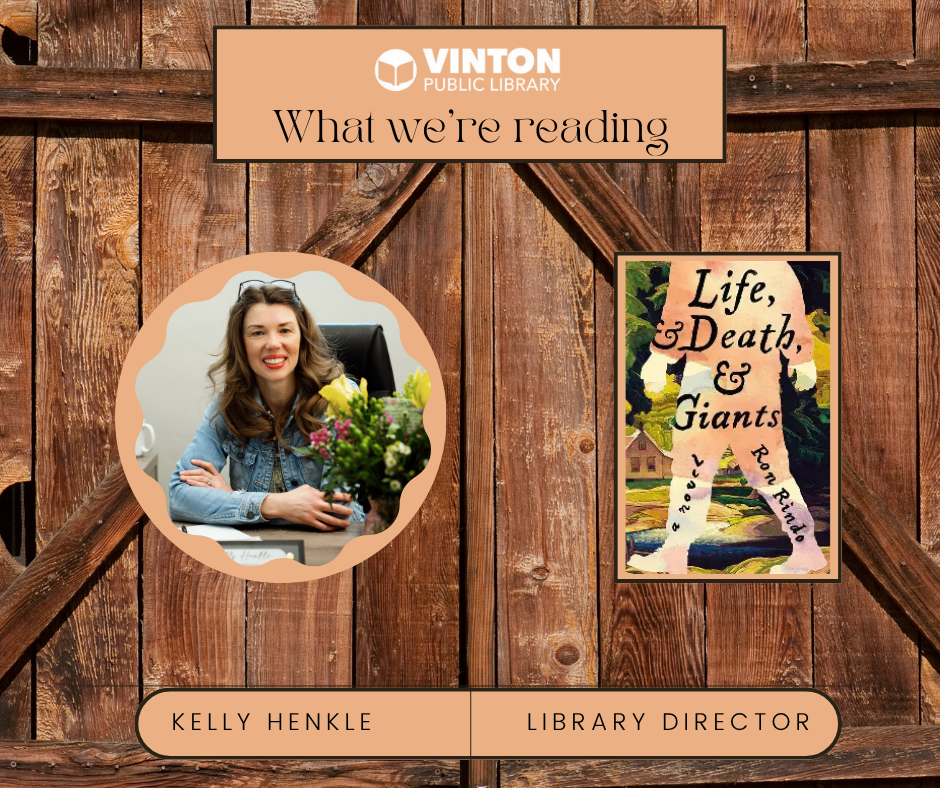 This story captivated me and reminded me of Tim Burton’s film ‘Big Fish’ with its elements of dramatic fantasy. I particularly loved the curious amalgam of Amish culture, gigantism, poetry, and football. I’d recommend this book to readers looking for something a little out of the ordinary. It currently has 4.4/5 stars on goodreads.com, and we have it available for checkout in regular type here at the Vinton Public Library.