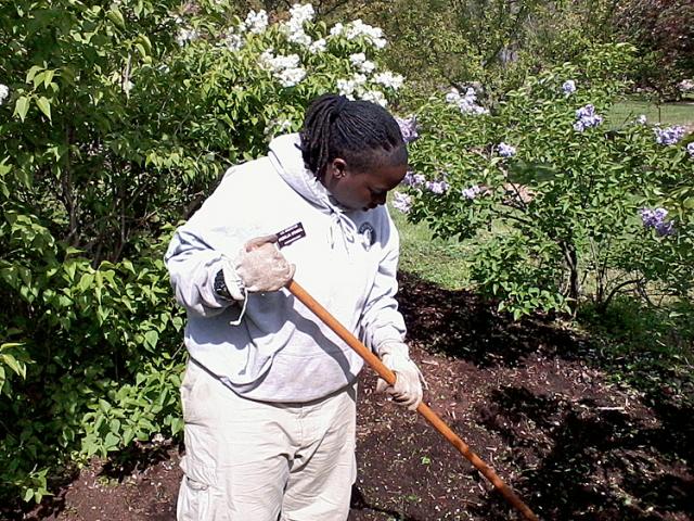 The team arrived March 12 and immediately began work on the restoration of the grounds. The work consists of fire preparation of Prairies, brush clearing, data entry, seed cleaning and planting, road development, tree planting, mulching, transplanting of native plants, and the removal of weeds in the Lilac area of the Longenecker garden. To date the team has cleared over 30,000 square feet of brush, created 4 prairie paths for controlled burnings and removed over 525lbs of invasive plants.