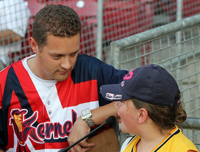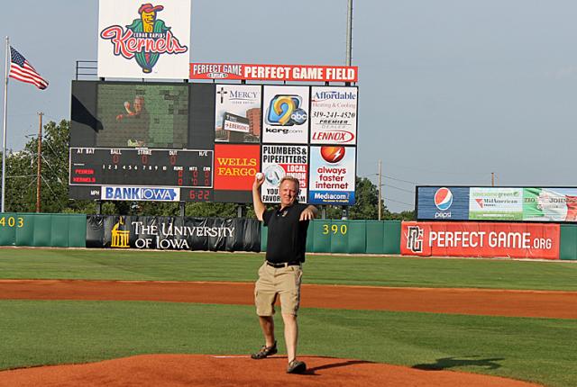 Bill Ervin threw out a first pitch. Ann Lent gave the official announcement to "Play Ball." Several other Vinton residents, mostly children, participated in the annual Vinton Night at Veterans Stadium. Vinton also shared the evening with Independence and the Eastern Iowa Honor Flight. The special jerseys worn by the Kernels that night were sold in a silent auction to raise money for futur flights.