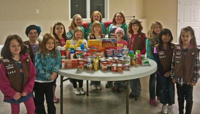 Girl Scout troop 6652 collected food to donate as part of a project to earn their "Feed the Hungry" Patch.
