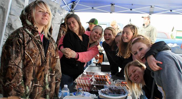 On Friday October 19th, 2012, we had a group of FFA members work with Farm Bureau to have the America Needs Farmers (ANF) tailgate in the bottom of the parking lot before our last home football game. We had burgers, chips, water, and a whole lot of desserts. We had many teachers, students, FFA members, and community members show up to buy their supper. We had many people helping out, and it was greatly appreciated. The weather was not in our favor for the second year in a row, but we still made the best out of it and had fun. We threw out Tshirts and footballs to our school pep assembly and after we cleaned up at our tailgate, to the people in the stands at the football game as well. We had some games going on in the parking lot that students could play and win different prizes as well. But overall we had a very good time and hope to continue to do it in the years to come!