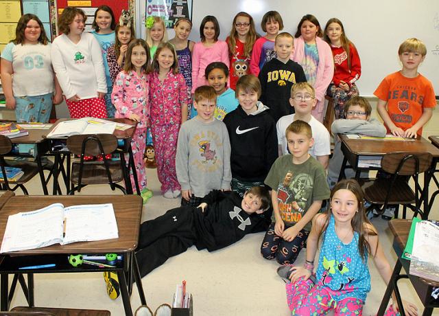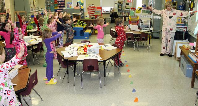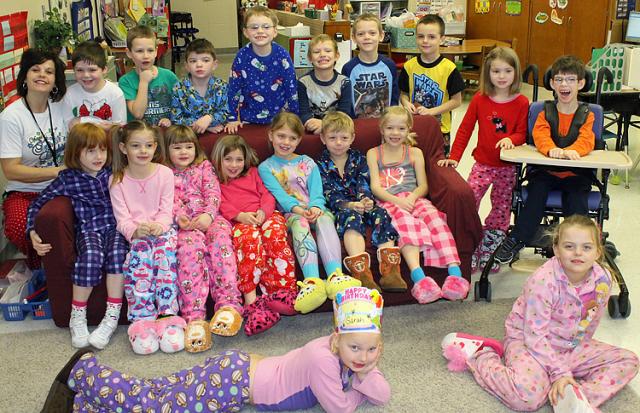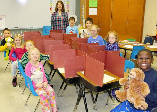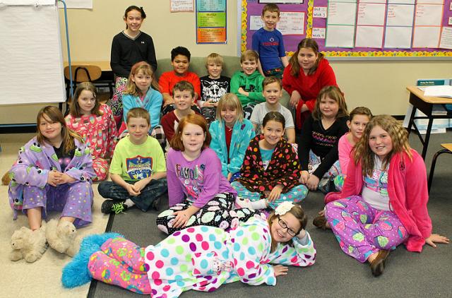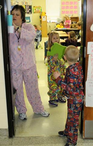Friday was PJ Day at Tilford, a fun prize for the students to honor them for achieving one of the goals for their fund-raiser for custodian John Scriven, who is battling cancer.