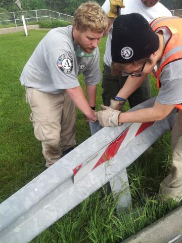AmeriCorps NCCC team Oak 1, from Vinton, Iowa, is collaborating with the U.S Army Corps of Engineers in Coralville, Iowa to help rebuild trails, maintain the dam and pull invasive plant species. It has been six weeks since the project started, and Oak 1 has pulled over 700 pounds of garlic mustard, installed seven water bars and reconstructed eroded hiking trails.