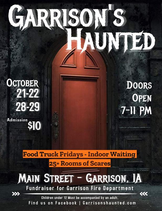 Proceeds from Garrison’s Haunted will be used for facility and equipment improvements for the Garrison Fire Department and Garrison First Responders.
