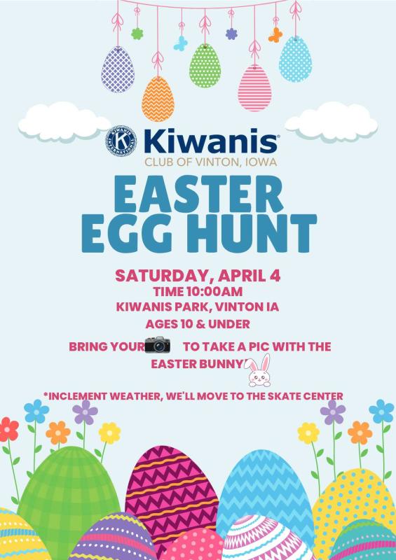 The Kiwanis Annual Easter Egg Hunt will be on Saturday, April 4 at 10:00 a.m.