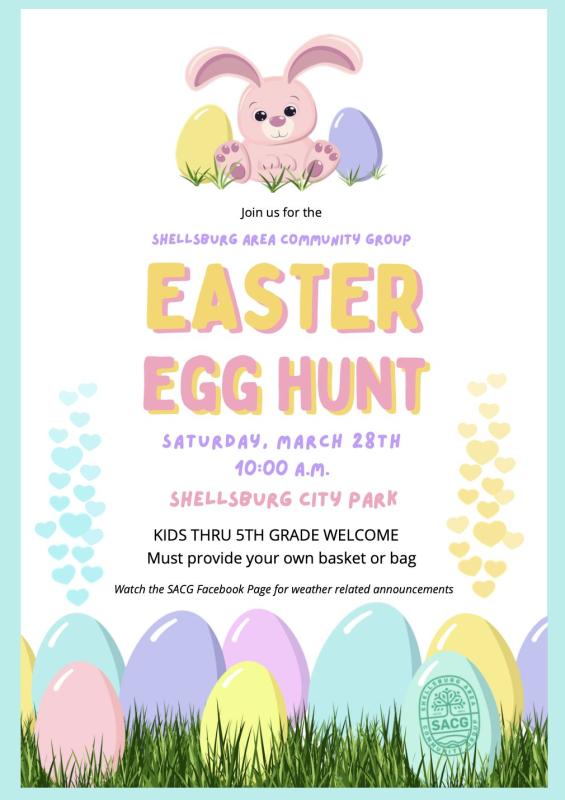 Join the Shellsburg Area Community Group for the Easter Egg Hunt on Saturday, March 28 at 10:00 a.m. at the Shellsburg City Park. Any kid through 5th Grade is welcome...don't forget to bring a bag or basket!