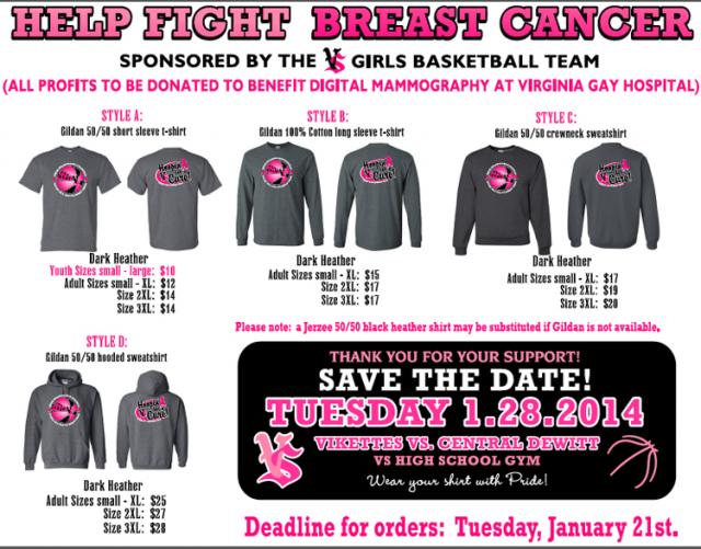 The annual Vinton-Shellsburg girls basketball Pink Night will take place Tuesday, Jan. 28. The event will honor area breast cancer survivors and help raise funds for the Gifts of Hope mammography fund.