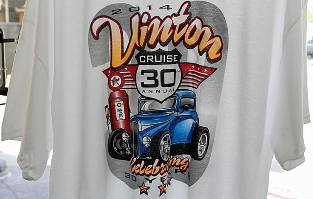 T-shirts available at Nick's TV and Theisen's indicate that Vinton car lovers are preparing for the 30th Annual Vinton Cruise.