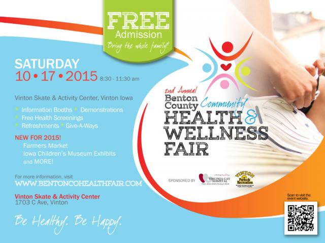 Join us this Saturday from 8:30 – 11:30 am at the Vinton Skate & Activity Center for the 2nd Annual Benton County Community Health & Wellness Fair. There is no admission fee and you are welcome to stay as long as you wish.
