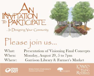 The Iowa’s Living Roadways Community Visioning Program is sponsored by the Iowa Department of Transportation, in partnership with Iowa State University Extension Landscape Architecture and Trees Forever.